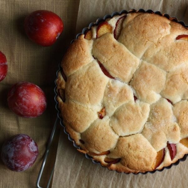 What makes this cake so delicious is that it uses a shortbread-style dough to enclose the fruit. The dough is not overly sweet, and instead, just provides the perfect buttery compliment to the fruit’s natural sweetness. Use any stone fruit (like plums, peaches, apricots) that’s in season, or, just use berries. It’ll be delicious eitherway.