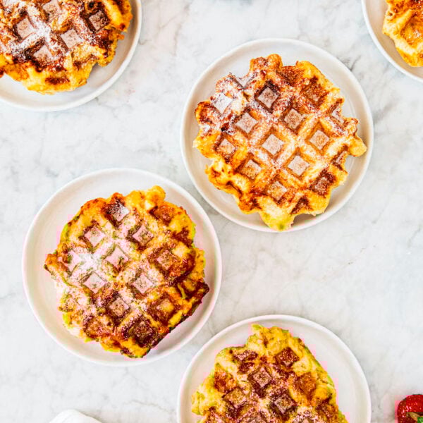 The Brussels waffle is more commonly known as the “Belgian waffle.” Although Brussels waffles were traditionally made from a yeasted dough like Liège waffles, they are now typically made from cake batter. This cake batter uses baking powder or soda as its leavener, resulting in light and crispy waffles. The Brussels waffle is very similar to the Belgian waffles you find on breakfast menus in the United States.