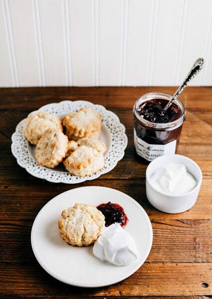 - If you’re making these for breakfast, a best practice is to get up a little early to dump the tea into some cream to infuse it with flavor, and go back to bed. Wake up a few hours later and make the biscuits. When the biscuits are ready, whip up the cream and serve. If that sounds a little too labor intensive, you can always just skip the infused cream and use regular whipped cream. I also didn’t add any sugar to the Earl Grey whipped cream because the jam I was using was pretty sweet, so feel free to throw a teaspoon or two of confectioner’s sugar to the recipe if you’re looking for something a little bit sweeter.ย