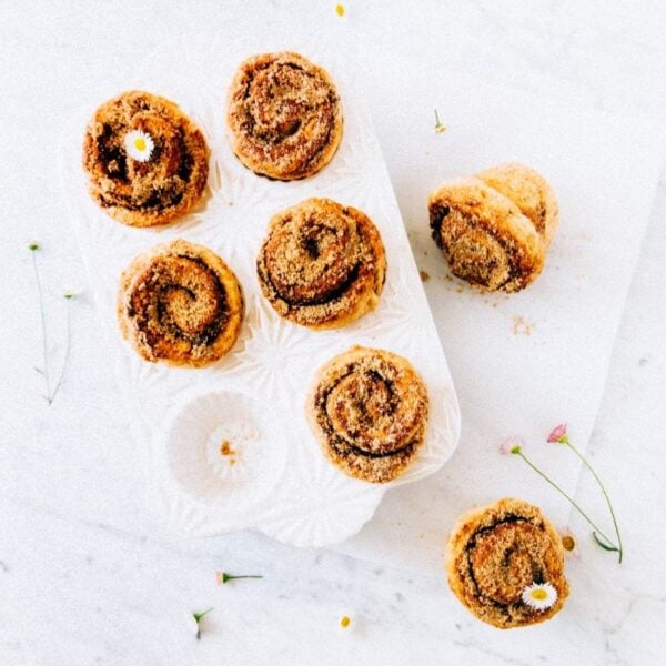 Strapped for time and space in her city bakery, Claire developed a quickbread based recipe for cinnamon buns. As opposed to traditional bread recipes that use yeast to leaven the bread, quickbread recipes use leaveners like baking powder and baking soda instead. It significantly cuts down the baking time, eliminating any need to rest and proof the dough — heck, you don’t even need to let any ingredients come to room temperature beforehand! It’s perfect for folks who don’t have four hours in their day to dedicate to bread making, but still want a hearty and rustic pastry.