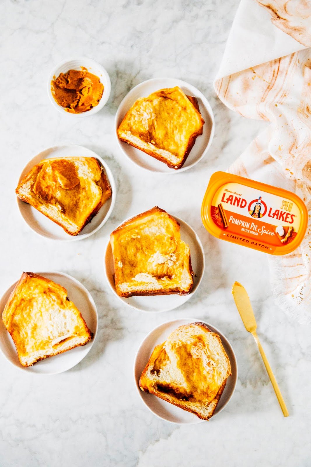 - 5 tablespoons Land O Lakesยฎ Pumpkin Pie Spice Butter Spread