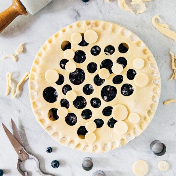 - For my pie lid, I used these cookie cutters to stamp out the circles (I thought maybe they’d look like blueberries? I don’t know if it worked though). I rolled out the dough for the lid, froze it for 15 minutes, stamped out the shapes, froze it once more for another 15 minutes, then nestled it on top of the filling. Depending on how cold your kitchen is/how quickly you work, you might not need to freeze the lid a second time.