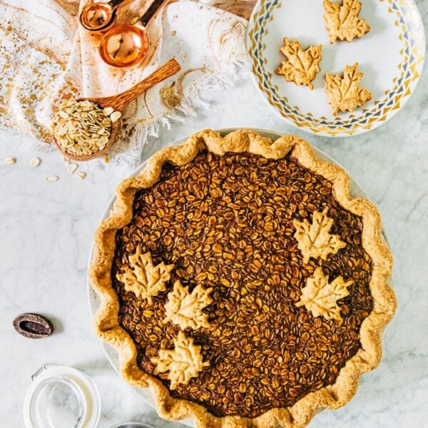 If you’re looking for a unique and different Thanksgiving pie recipe, this black bottom oatmeal pie recipe is for you! First popularized by famed Brooklyn pie shop, Four & Twenty Blackbirds, this pie is inspired by the flavors of an oatmeal chocolate chip cookie—jump to the recipe! For even more flavor, be sure to use organic all-purpose flour and old-fashioned rolled oats from my sponsor, Bob’s Red Mill. As always, all thoughts and opinions are my own, and thank you for supporting the brands that keep the lights on at Hummingbird High!