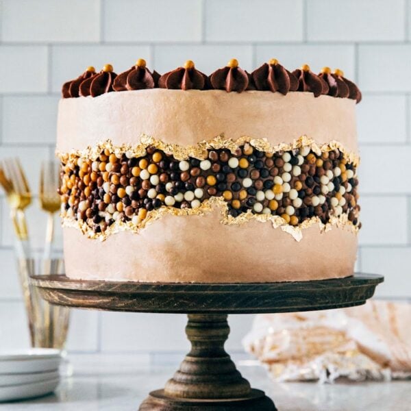 - {Styling Tip} Don’t panic if you get a little bit of frosting on some of your chocolate pearls—most folks won’t even notice, I promise! But if you’re type A (like me) and it’s really bothering you, know this: the chocolate pearls are super forgiving, and any buttercream frosting that accidentally gets on them can be gently wiped or dabbed off with a paper towel.