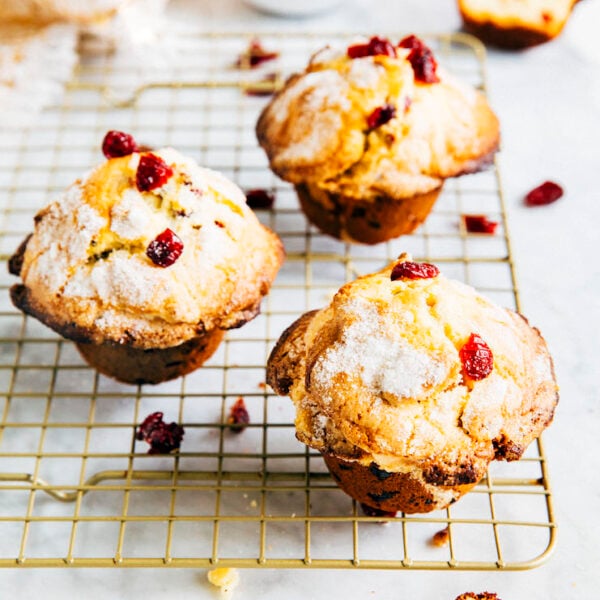 If you use fresh cranberries, there’s no need to change anything about the recipe. However, you may want to skip soaking the cranberries in juice. It won’t be necessary to soak the fresh fruit. You may also need to add a few minutes to the Bake Time. It’s likely that the muffins will bake for 22 to 24 minutes, as opposed to the 20 to 22 minutes listed in the recipe below.