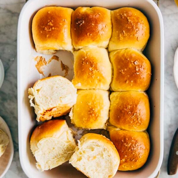 The only disadvantage to making them all in one day is that the dough will be super soft and sticky after the first rise. Be sure to generously flour your hands and work surface when dividing the dough and rolling it into buns! - Alternatively, you can make the dough up to 3 days ahead of shaping them into rolls and baking them. Simply keep covered and refrigerated for up to 3 days, then follow the recipe instructions to shape the dough into rolls, proof again, and bake accordingly.