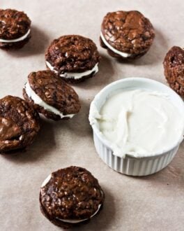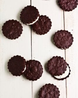 Linzer cookies, based on Austria’s famed linzer torte shortcake, are lightly spiced hazelnut cookie sandwiches traditionally filled with raspberry jam. This chocolate almond linzer...